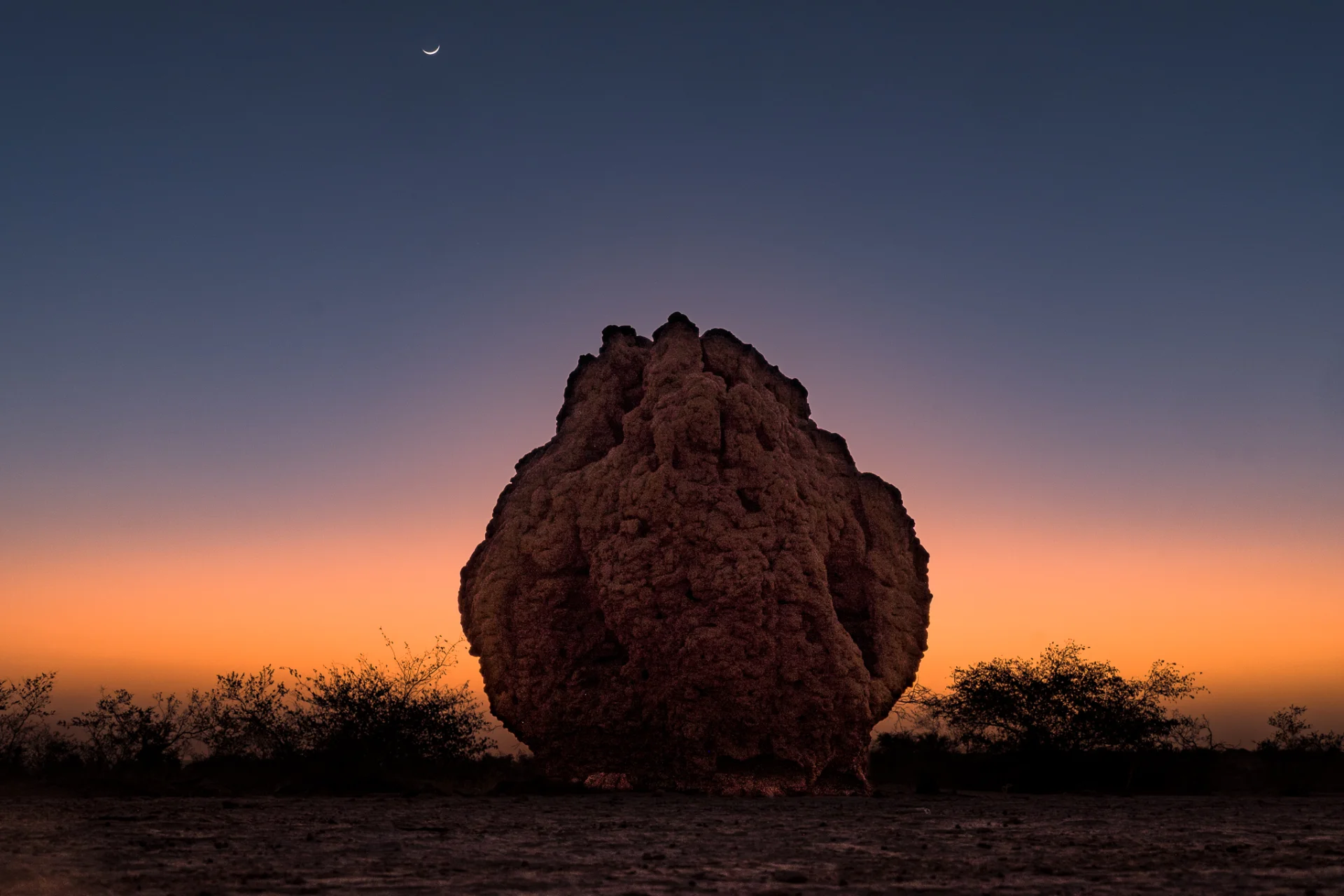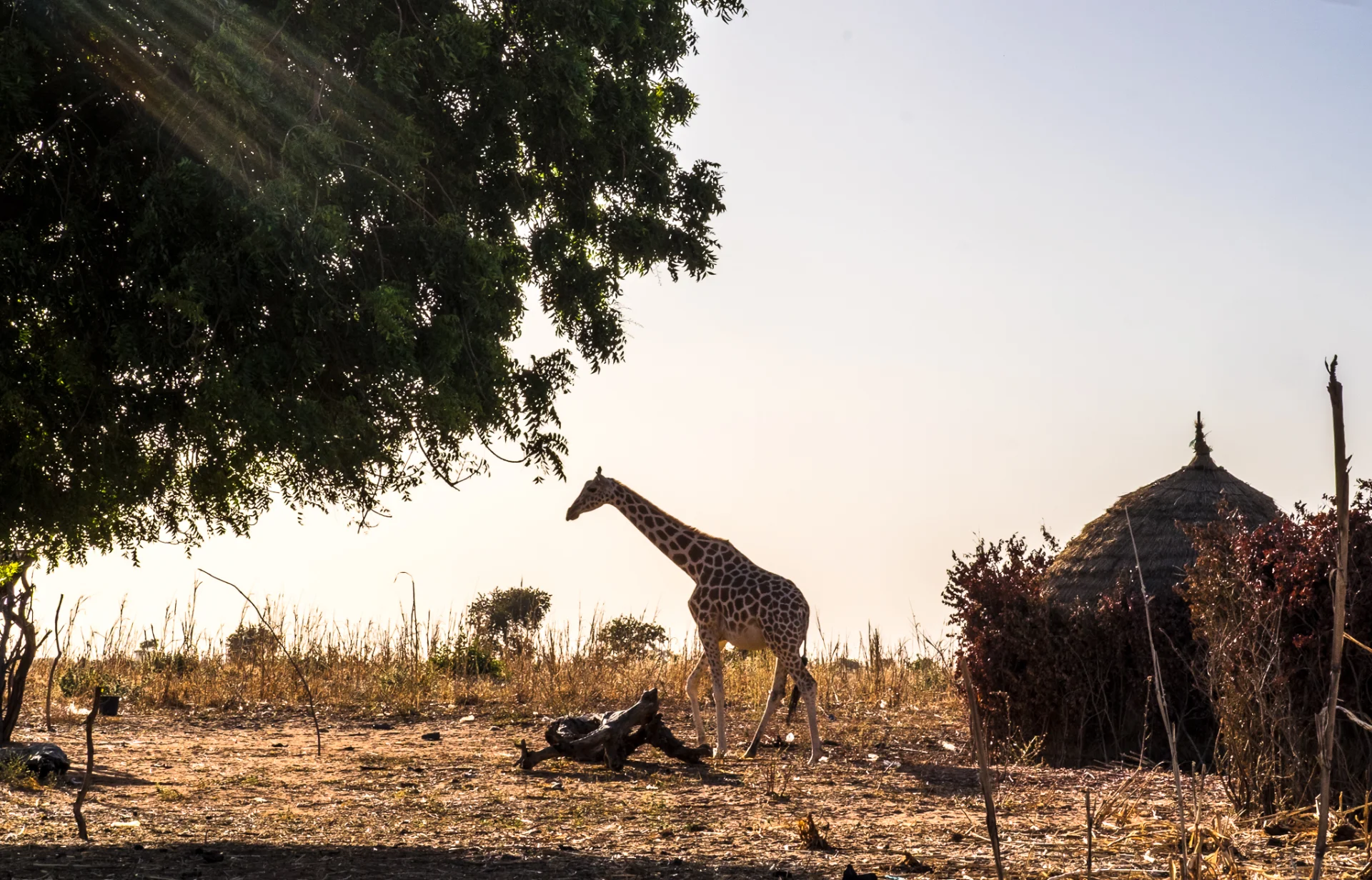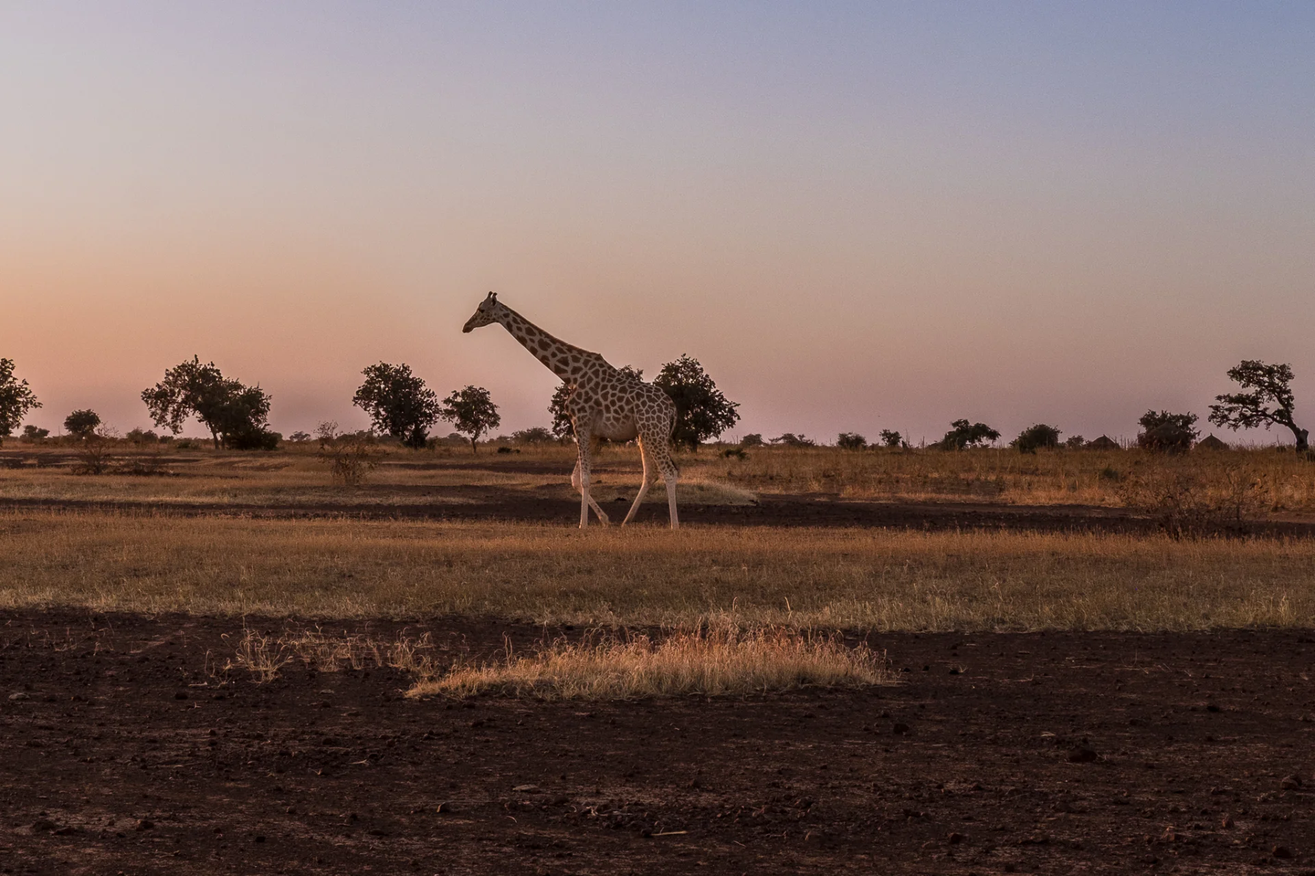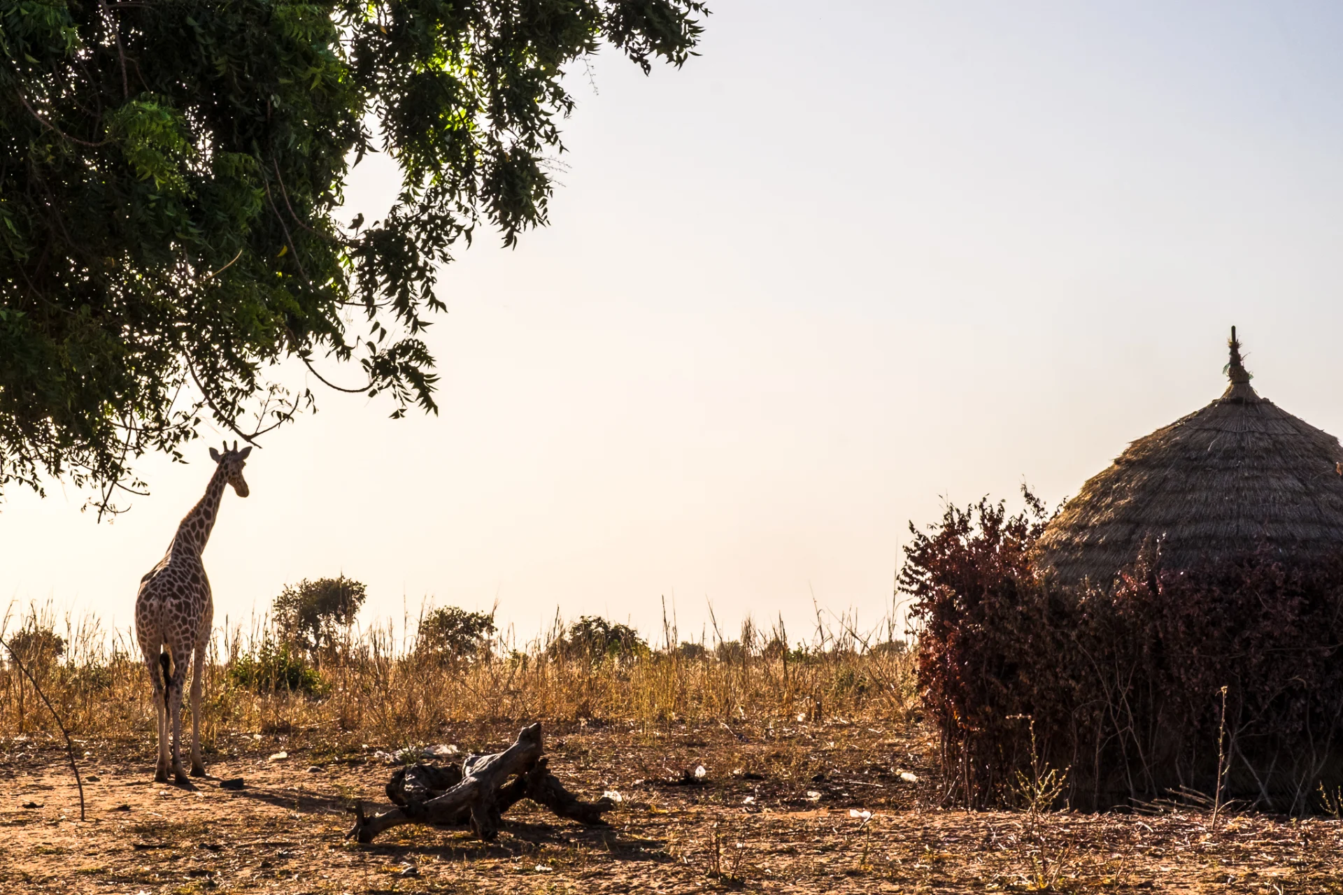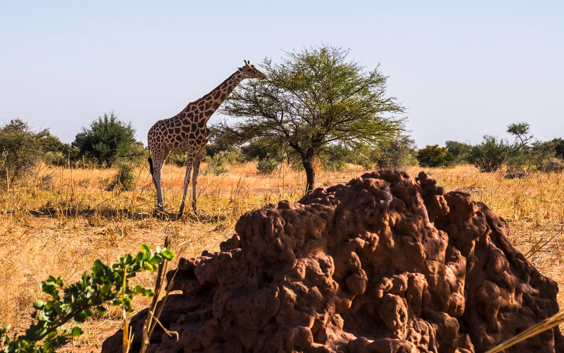 Je découvre enfin ce que l’on appelle le « petit soir ». C’est quand le soleil est couché, la période avant le nuit. Dans certaines régions d’Afrique, le petit soir dure longtemps. Ça a été le cas. La lumière était sublime : chaude, feutrée, enveloppante, cuivrée, sanguine. Tout changeait. Les paysages reprenaient vie. On termine la journée avec quelques termitières géantes (3m de haut), mais sans voir les termites.