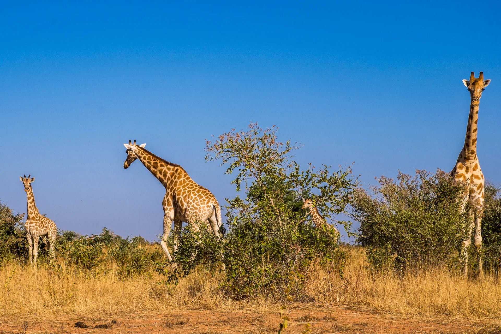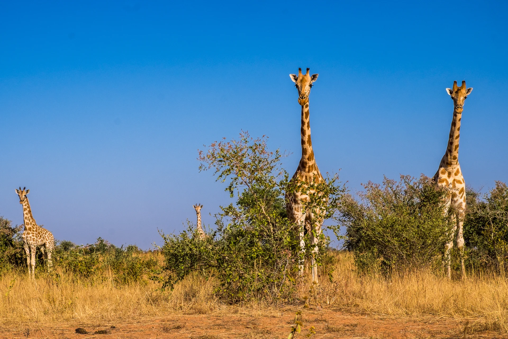 Ainsi, on en compterait plus de 1000 individus actuellement. Kouré est la plus grande réserve de girafes au monde. Préservées également de la chasse, elles vivent tranquillement au contact des petits villages qui subsistent encore dans cette étendue sauvage de 40 000 km2.