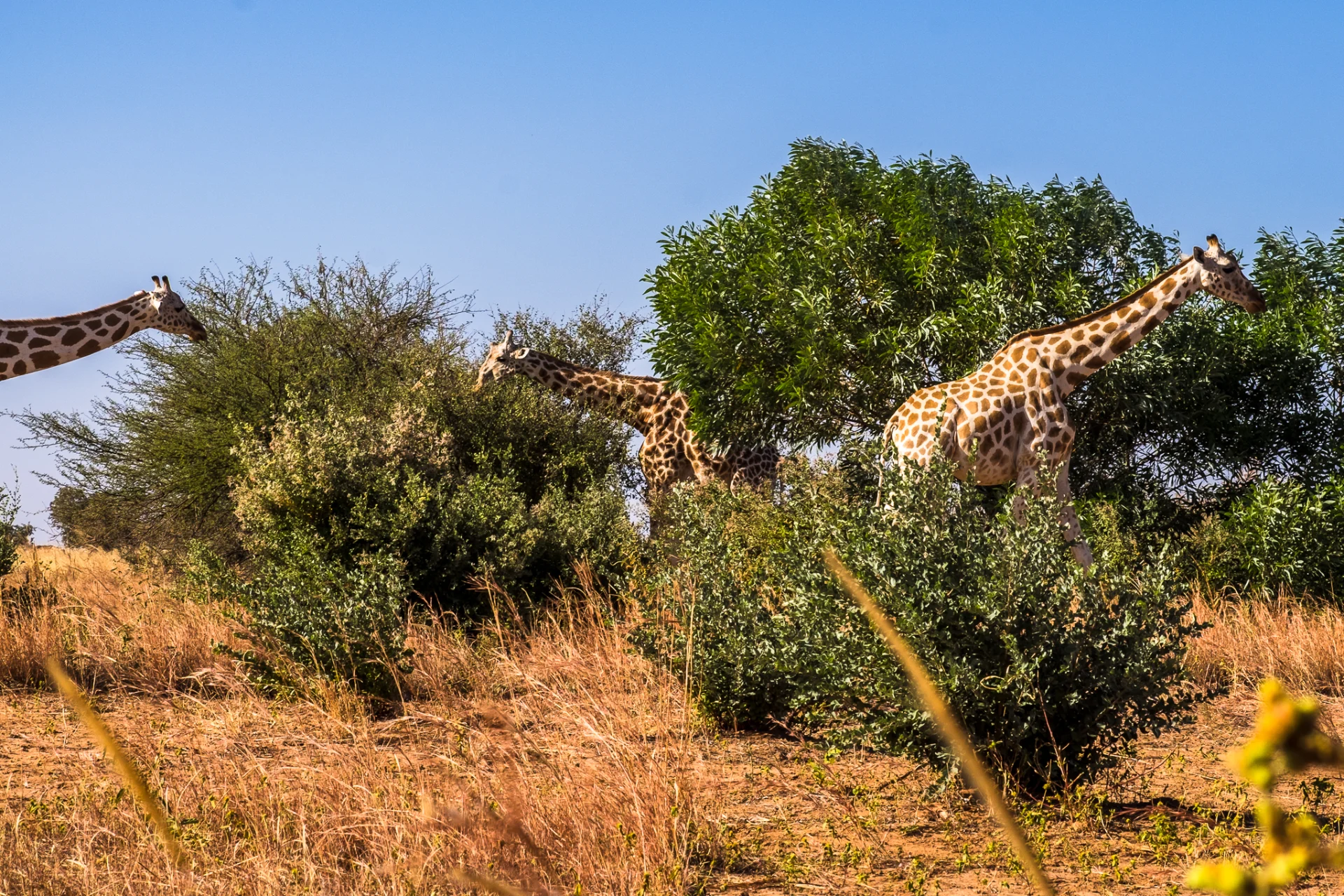 La population des girafes d’Afrique de l’Ouest était menacée d’extinction. Il en restait 49 en 1996 ! Mais d’elles-mêmes elles ont migré au Niger, entre le plateau de Kouré et la vallée du Dallol Bosso. L’instinct les a bien guidées : elles n’ont pas de prédateurs dans ce pays.